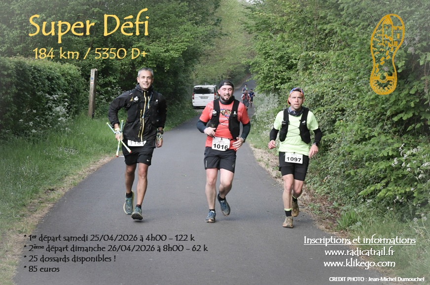 Super défi : 184k comprenant le RadiCassant (122k) le samedi matin et le RadiCal’Trail (62k) le dimanche matin